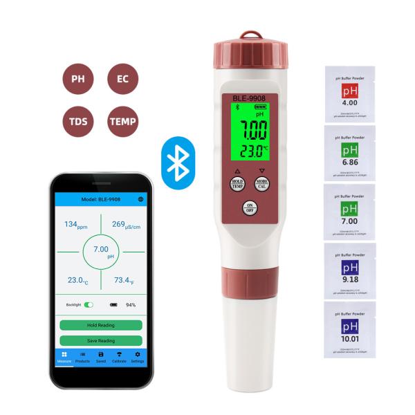 4-in-1 intelligent detection+Bluetooth connectivity: measurable pH(0.00 - 14.00 ),TDS(0 - 9999ppm ),EC(0 - 9999μS/cm ,10.01 - 19.99mS/cm ),Temp(0.0 - 60.0 ℃/32.0-140.0 ° F), covering core water quality indicators; Supports Bluetooth connection to mobile phones, real-time data synchronization APP, can save and view historical data, suitable for modern intelligent life and professional recording needs, different from traditional non intelligent water quality pens.